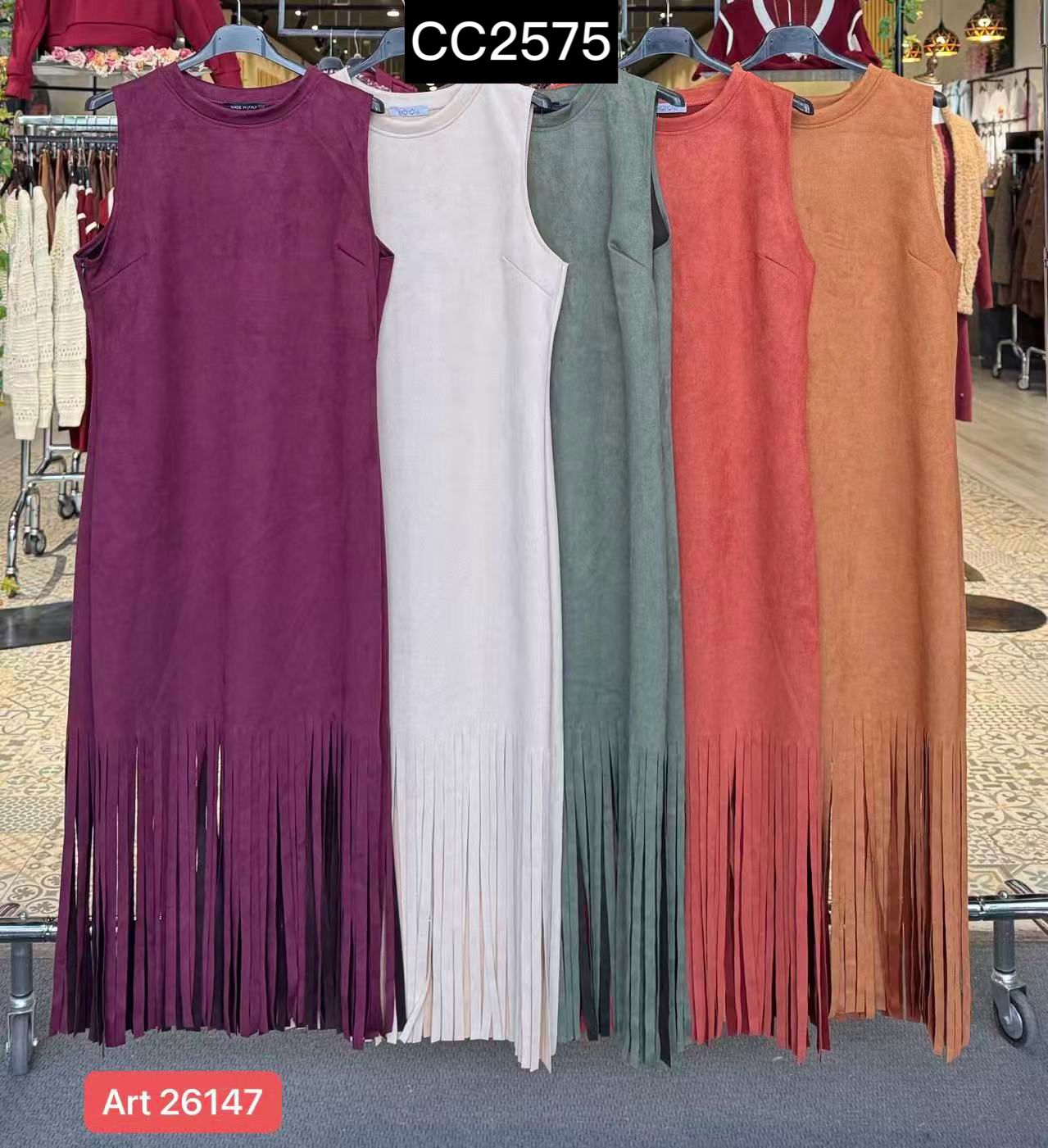 / Vestido antelina con flecos